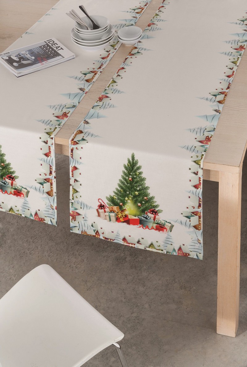 Χριστουγεννιάτικο runner αλέκιαστο 100% βαμβακερό, της σειράς Snow Tree από την εταιρεία Makis Tselios - Διαστάσεις: 45x150εκ.