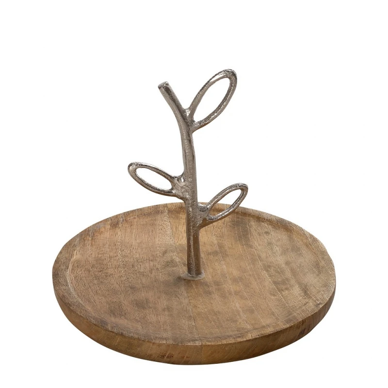 Διακοσμητική πιατέλα ξύλινη με μεταλλική λαβή ασημί από την ESPIEL - Διαστάσεις: 25x21εκ. - Η ελάχιστη ποσότητα αγοράς για αυτό το προϊόν είναι 2τμχ.