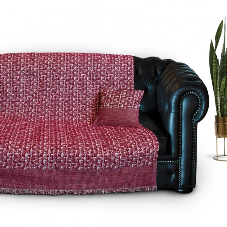 Διακοσμητική μαξιλαροθήκη σενίλ ζακάρ (chenille jacquard) σε μπορντώ χρώμα της σειράς Florenz Collection από την Sb home - Διαστάσεις: 40x40εκ.