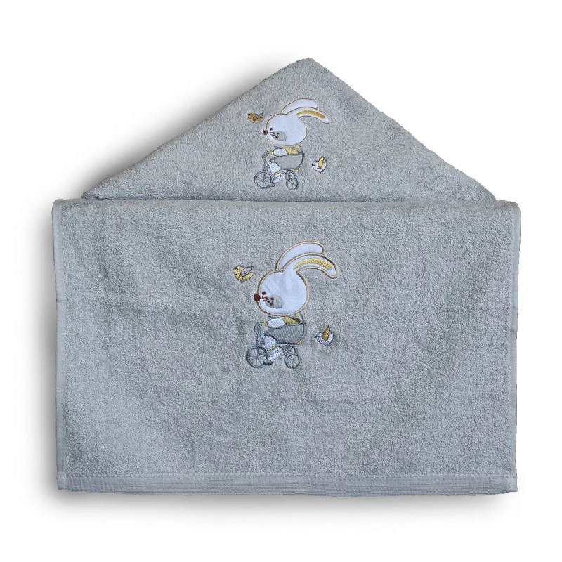 Σετ πετσέτες bebe με κέντημα, 100% βαμβακερές, 450gsm σε γκρι χρώμα της σειράς Bebe Collection από την SBaby. Το σετ περιλαμβάνει: 1 πετσέτα 70x130εκ. και 1 πετσέτα 30x50εκ.