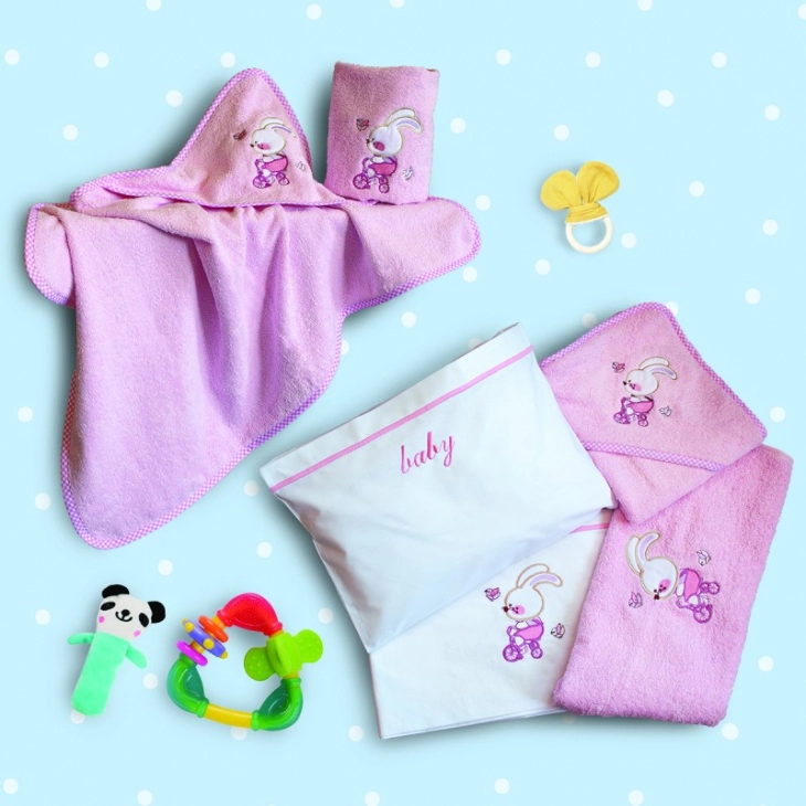 Κάπα bebe με κουκούλα, 100% βαμβακερή, 450gsm, σε ροζ χρώμα με κέντημα από την SBaby - Διαστάσεις: 75x75εκ.