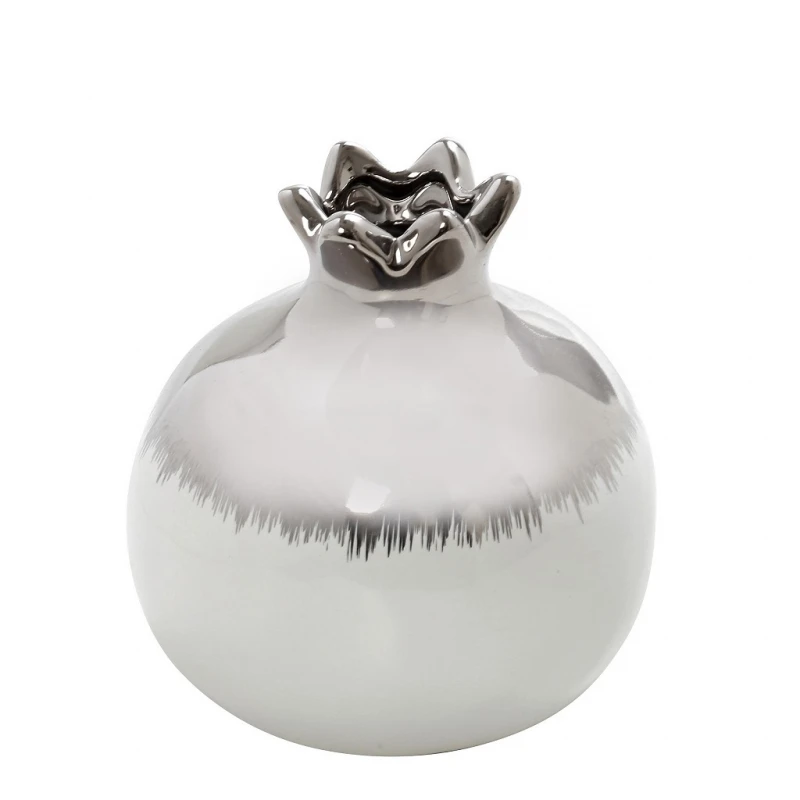 Διακοσμητικό Επιτραπέζιο Ρόδι Κεραμικό Λευκό-Ασημί ESPIEL 11x11x12,5εκ. ROD235K4