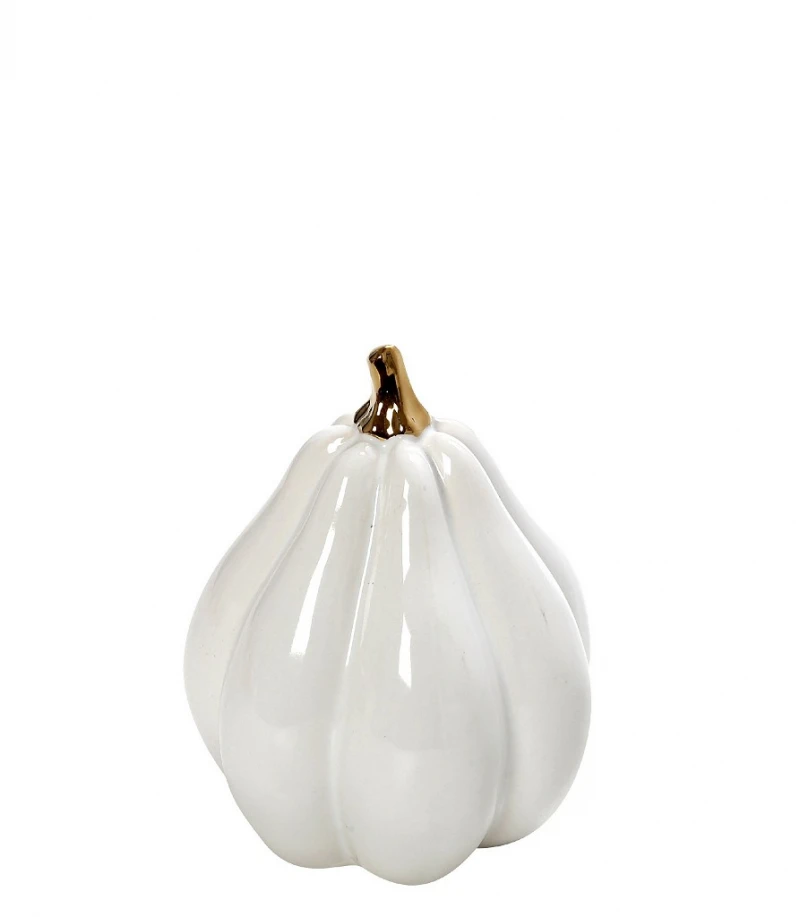 Διακοσμητική επιτραπέζια κολοκύθα κεραμική σε λευκό-χρυσό χρώμα από την ESPIEL - Διαστάσεις: 8,5x8,5x11εκ. Η ελάχιστη ποσότητα αγοράς για αυτό το προιόν είναι 6τμχ.