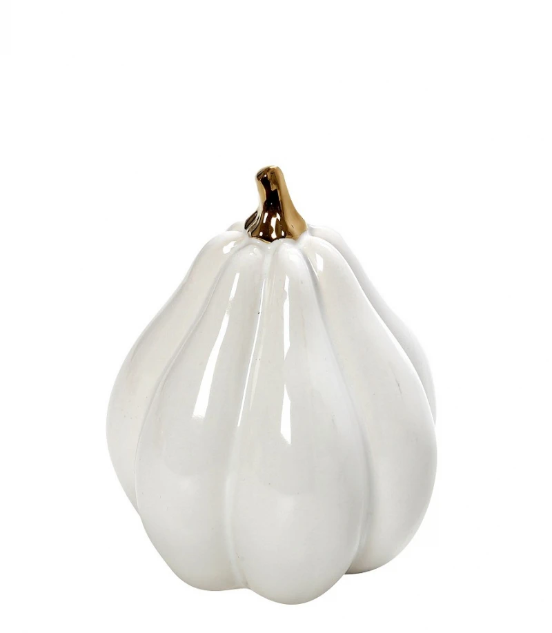 Διακοσμητική Επιτραπέζια Κολοκύθα Κεραμική Λευκή-Χρυσή ESPIEL 10x10x12,5εκ. ROD248K4