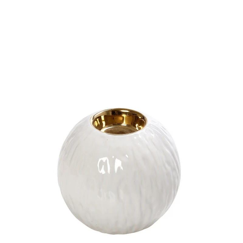 Κηροπήγιο για ρεσώ κεραμικό σε λευκό-χρυσό χρώμα από την ESPIEL - Διαστάσεις: 8,5x8,5x7εκ. Η ελάχιστη ποσότητα αγοράς για αυτό το προιόν είναι 6τμχ.