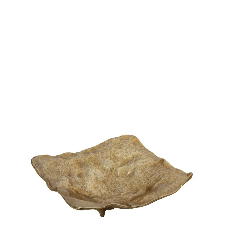 Διακοσμητική πιατέλα αλουμινίου, τετράγωνη, σε χρυσό χρώμα από την ESPIEL - Διαστάσεις: 29εκ.