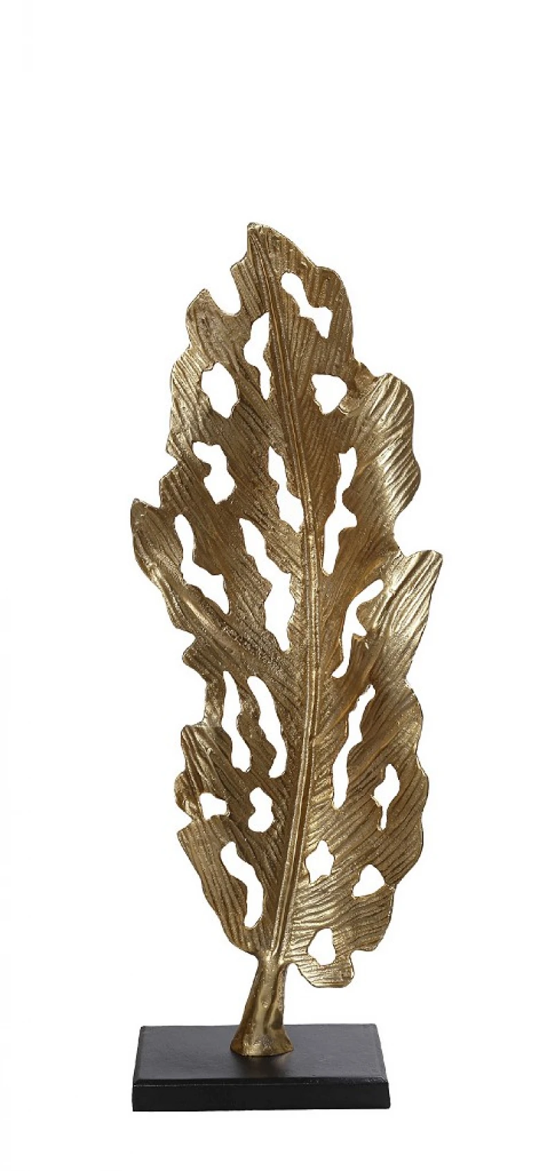 Διακοσμητικό φύλλο αλουμινίου σε χρυσό-μαύρο χρώμα με βάση από την ESPIEL - Διαστάσεις: 32x14,5x89εκ.