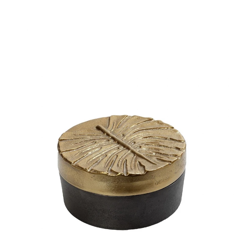 Διακοσμητικό κουτί αλουμινίου, με καπάκι, στρογγυλό και σε γκρι-χρυσό χρώμα από την ESPIEL - Διαστάσεις: 16,5x8εκ.