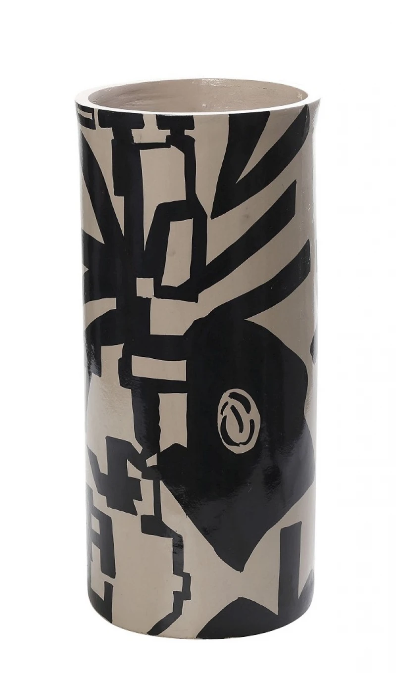 Βάζο από ανακυκλωμένο πεπιεσμένο χαρτί, χειροποίητο και ζωγραφισμένο στο χέρι, σε λευκό-μαύρο χρώμα με σχέδιο, της σειράς Ecomix από την ESPIEL - Διαστάσεις: 20,32x44,45εκ.