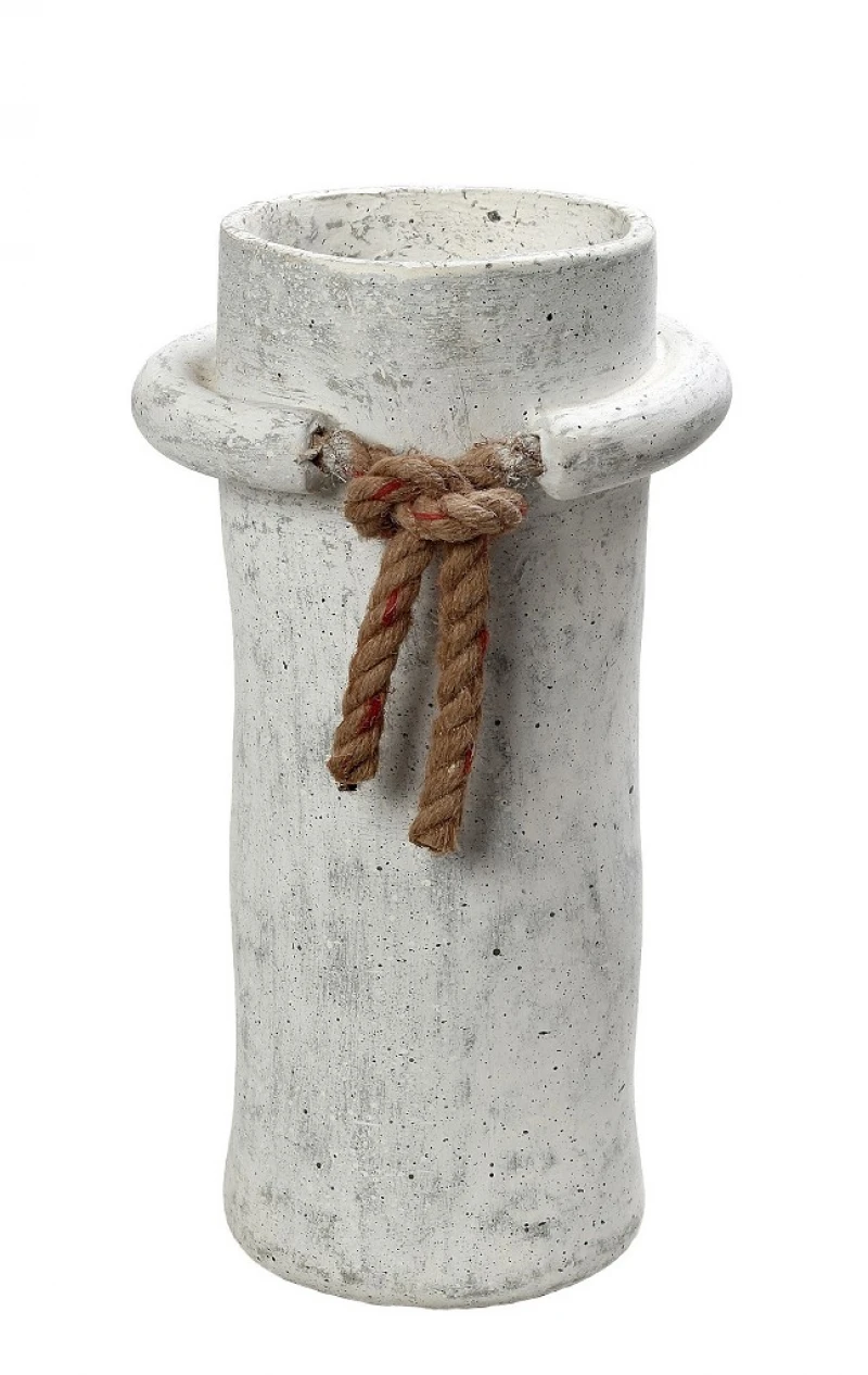 Βάζο χειροποίητο και ζωγραφισμένο στο χέρι, από ανακυκλωμένο πεπιεσμένο χαρτί, σε λευκό χρώμα με σχοινί, της σειράς Ecomix από την ESPIEL - Διαστάσεις: 20,32x36,83εκ.