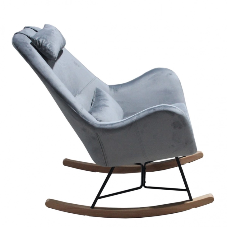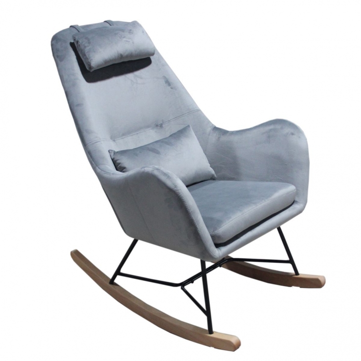 Πολυθρόνα κουνιστή μεταλλική-βελούδινη σε ανοιχτό γκρι χρώμα από την ARTELIBRE - Διαστάσεις: 68x107x105εκ.