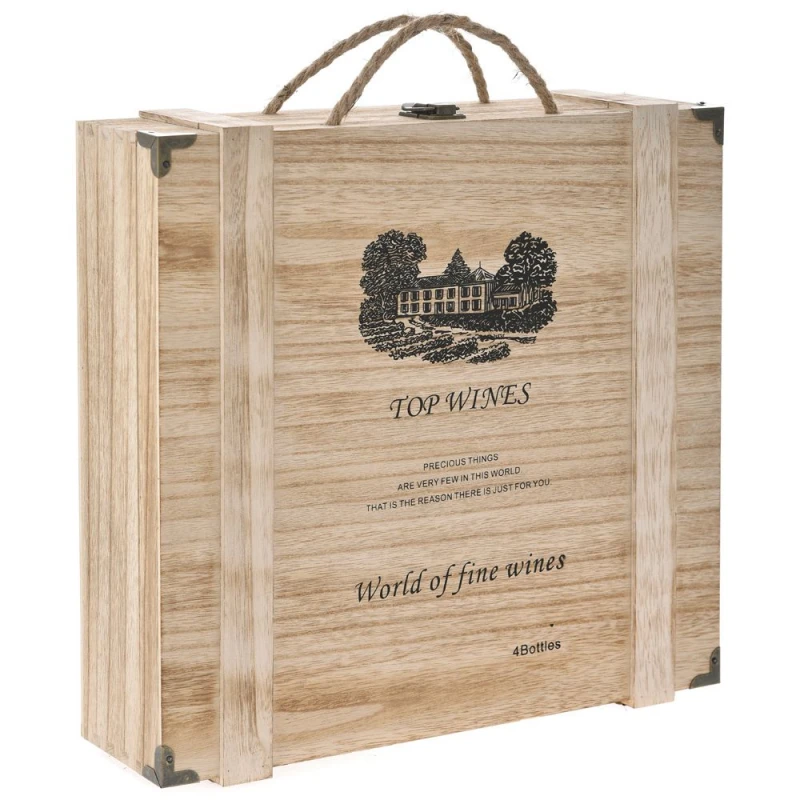 Μπουκαλοθήκη ξύλινη 4 θέσεων με χεράκι σχοινί από την iliadis - Διαστάσεις: 36x10x35εκ.