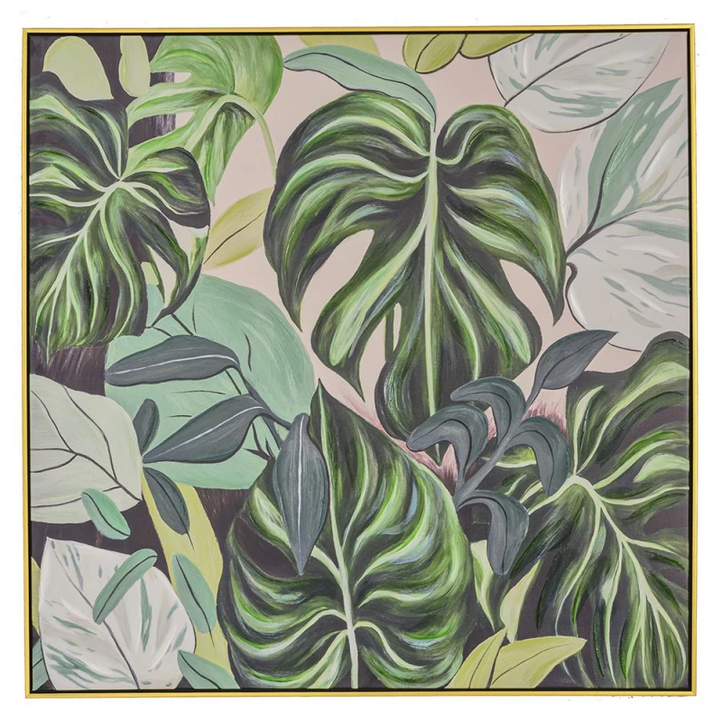 Πίνακας ελαιογραφία με θέμα φύλλα, τυπωμένος σε καμβά με χρυσή κορνίζα, από την iliadis - Διαστάσεις: 102x102εκ.