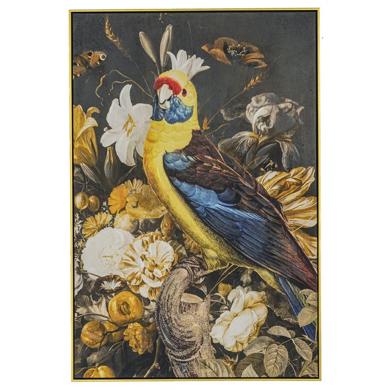 Πίνακας ελαιογραφία με θέμα παπαγάλο, τυπωμένος σε καμβά με χρυσή κορνίζα, από την iliadis - Διαστάσεις: 82x122εκ.