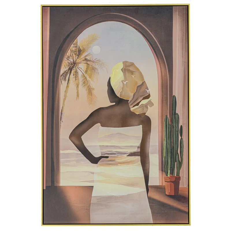 Πίνακας ελαιογραφία με θέμα γυναίκεία φιγούρα, τυπωμένος σε καμβά με χρυσή κορνίζα, από την iliadis - Διαστάσεις: 82x122εκ.