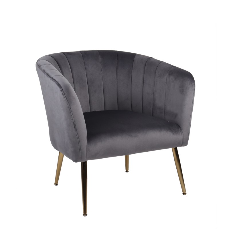 Πολυθρονάκι Βελούδινο Γκρι Με Μαύρα Μεταλλικά Πόδια 60x54x78εκ. Freebo...