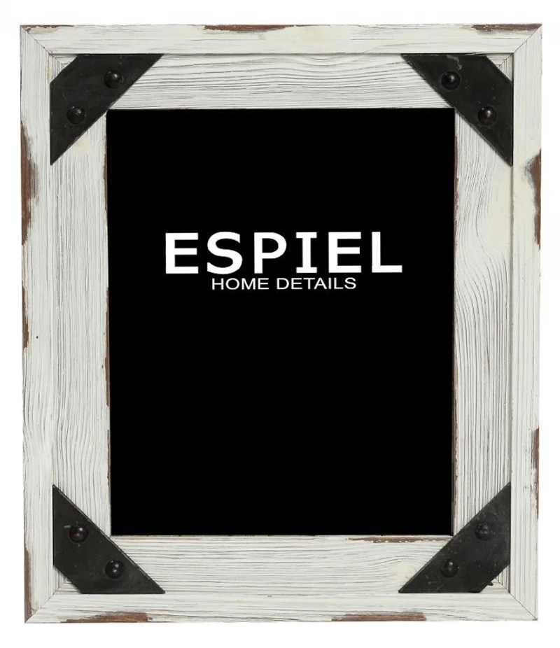 Ξύλινη κορνίζα σε λευκό αντικέ χρώμα με μεταλλικές λεπτομέρειες από την Espiel - Διαστάσεις: 28x1,5x33εκ. , Διάσταση φωτογραφίας: 20x25εκ.